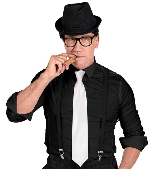 Boland Gangster Fedora Hut – Schwarzer Filz mit Weißem Band – 1920er Stil