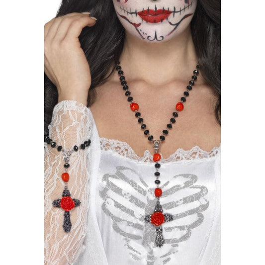Smiffys Day of the Dead Schmuck Set – Halskette & Armband mit Rosen-Kreuz