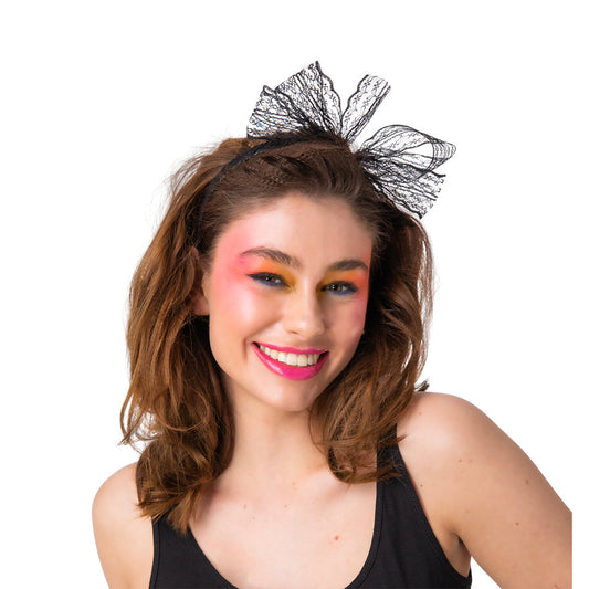 Wicked Costumes 80er Jahre Schwarzes Spitzen Haarband mit Schleife