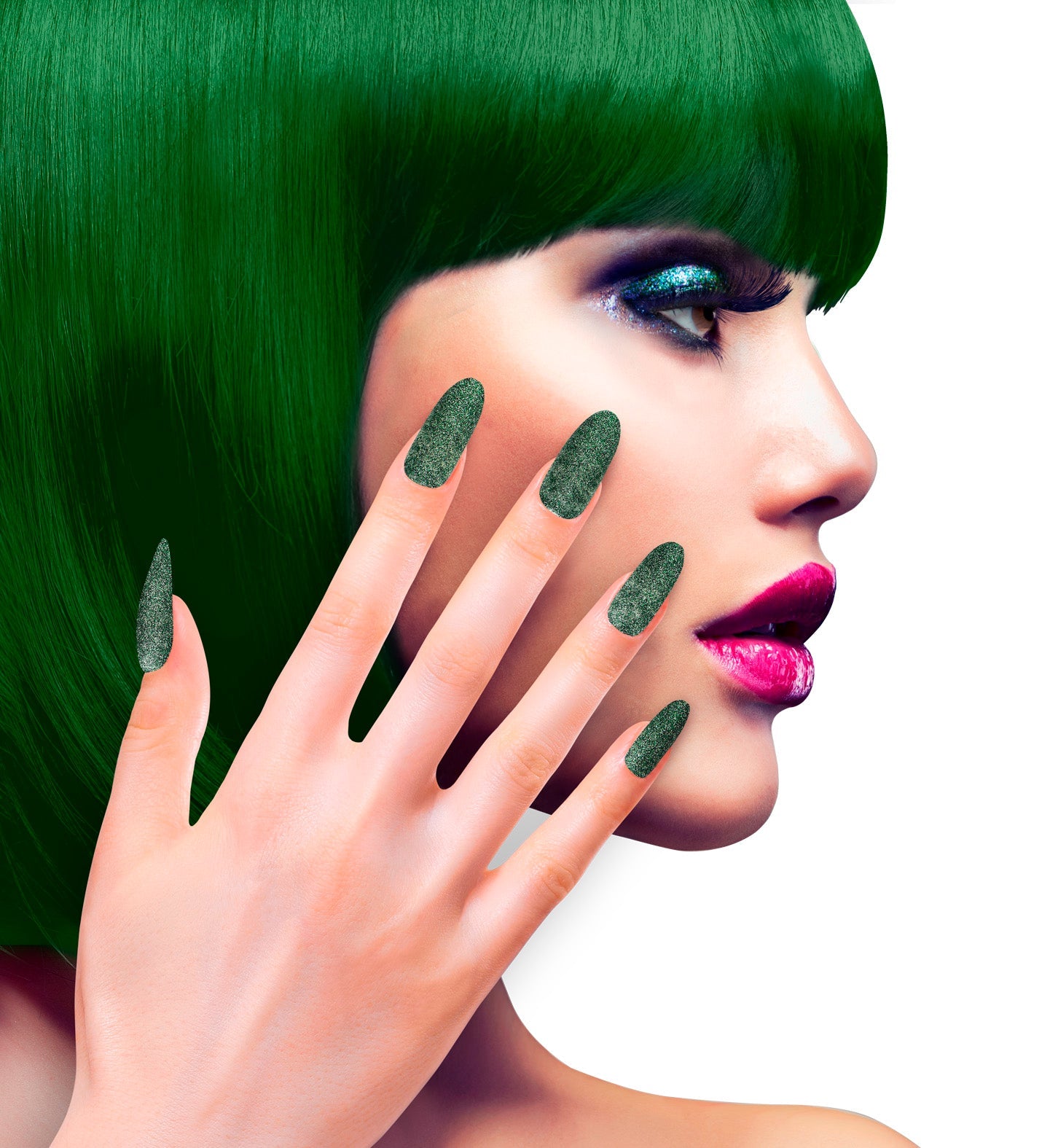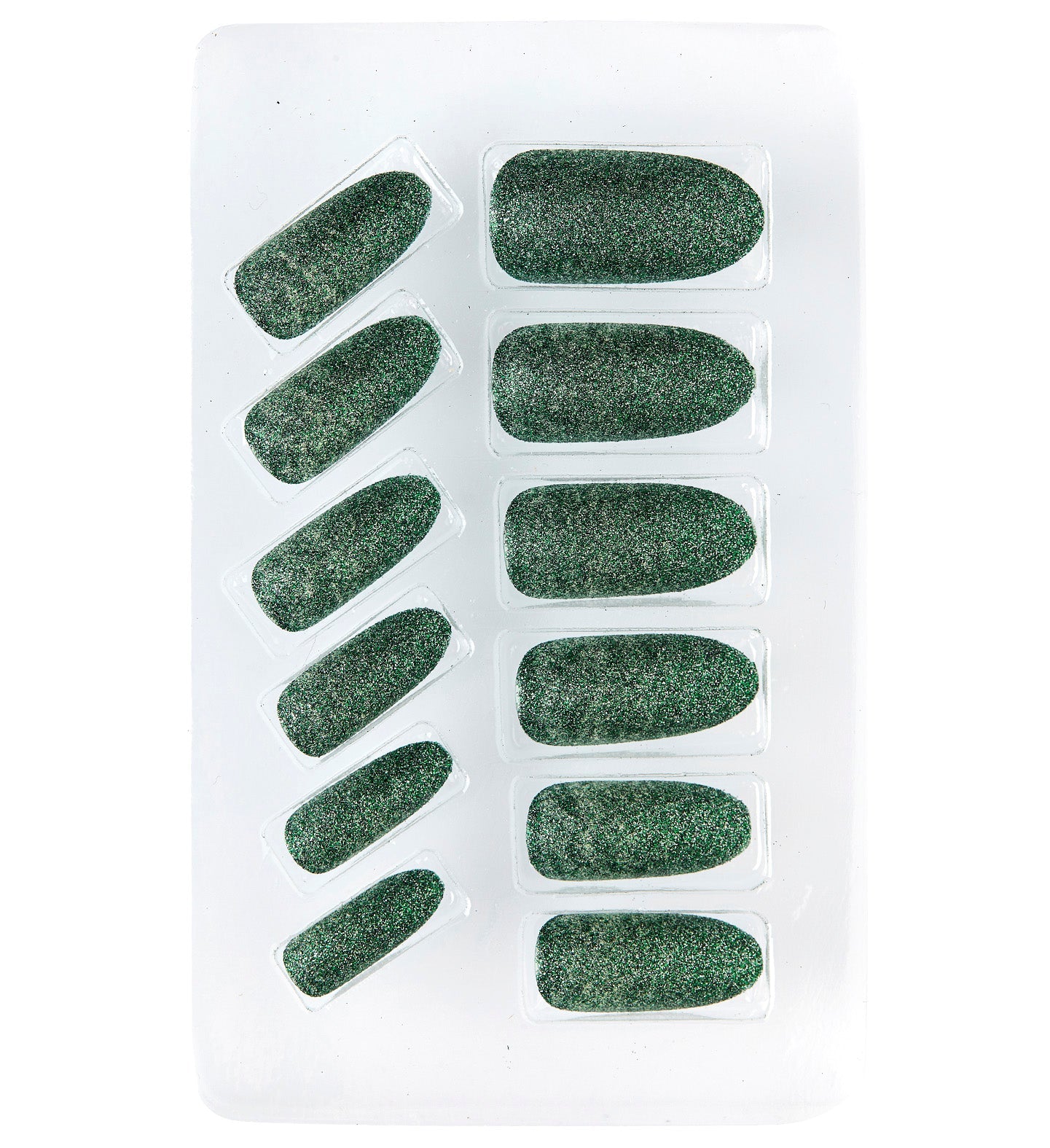 Widmann Selbstklebende Press-On Nägel – 12 Stück, Smaragdgrün Glitzer