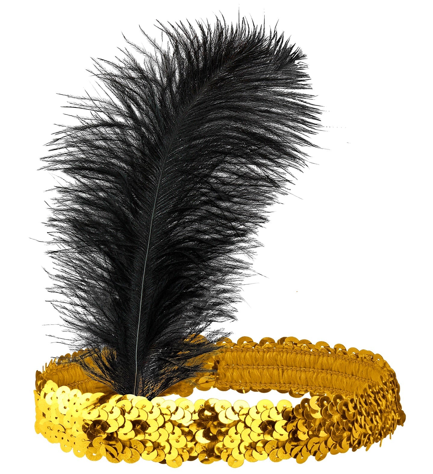 Widmann 1920er Jahre Goldene Pailletten Stirnband Mit Feder – Vintage Accessoire