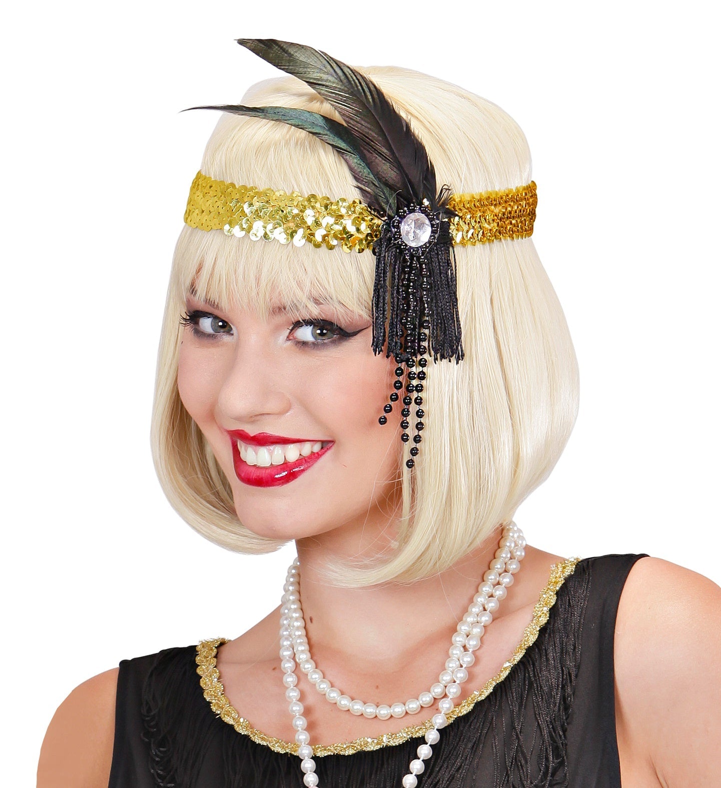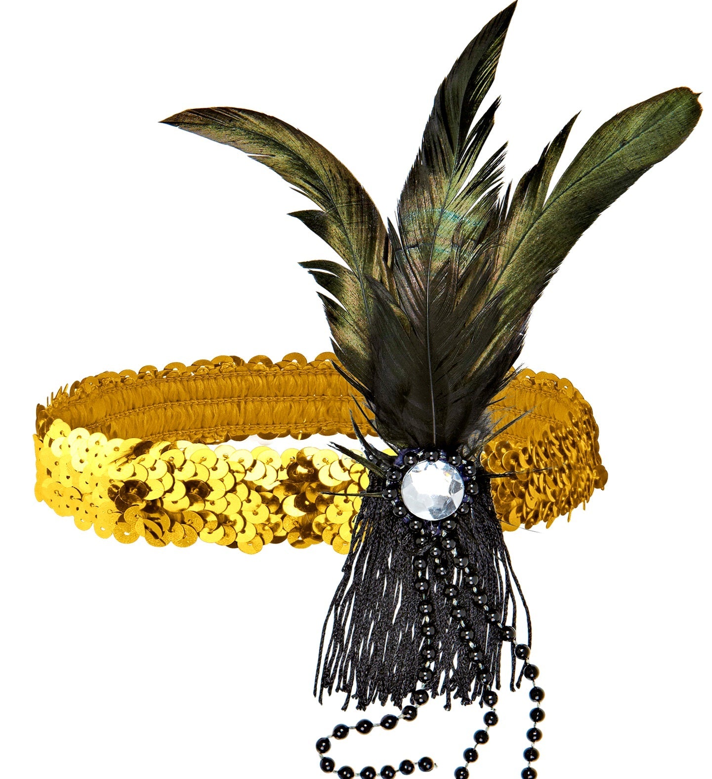 Widmann Goldener 20er Jahre Stirnband – Pailletten, Federn & Perlen