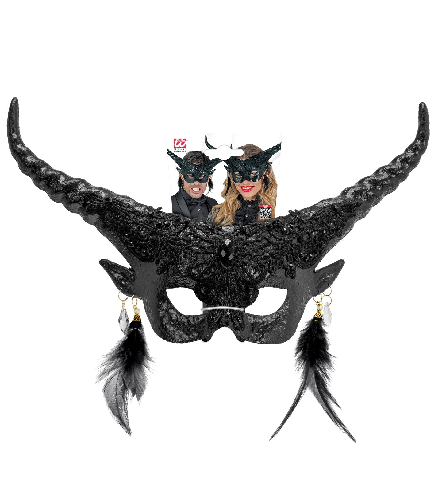 Widmann Teufelsmaske – Schwarzer Commedia Dell'Arte Maske mit Hörnern