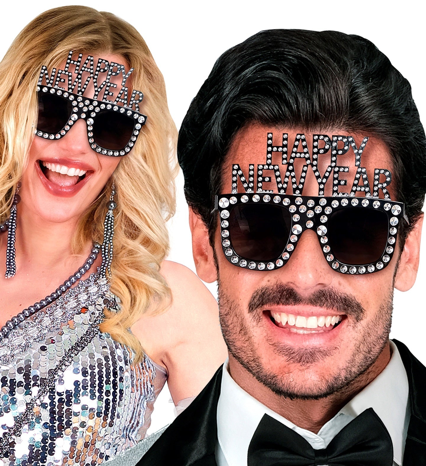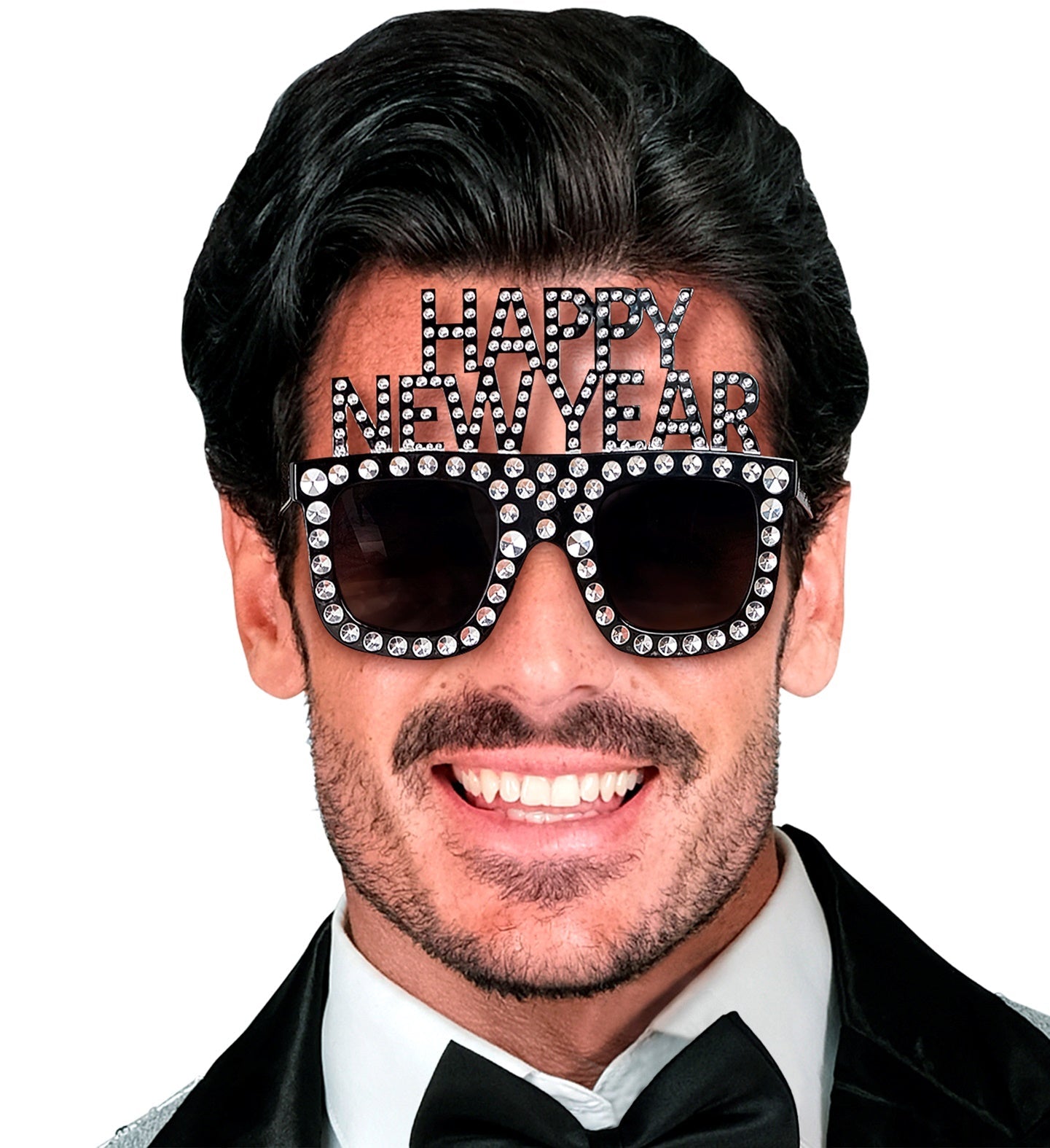 Happy New Year Brille Schwarz – Widmann Partybrille für Erwachsene & Teens