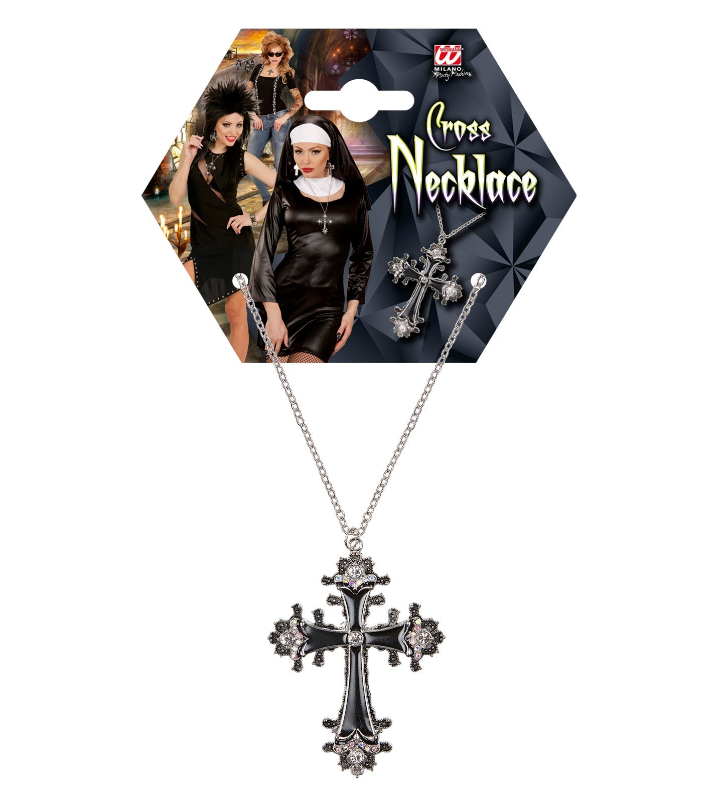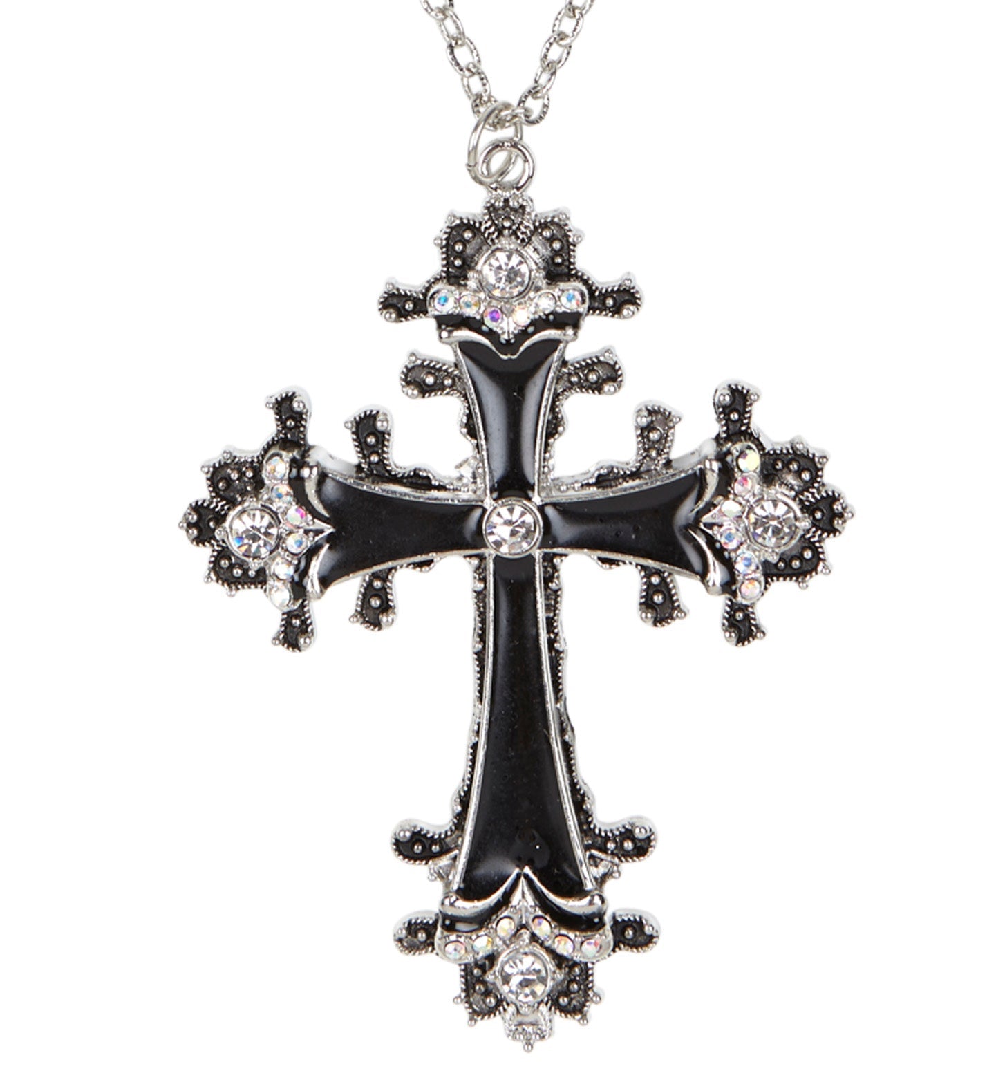 Widmann Schwarze Strass Kreuz Halskette – Verstellbar, Nickelfrei