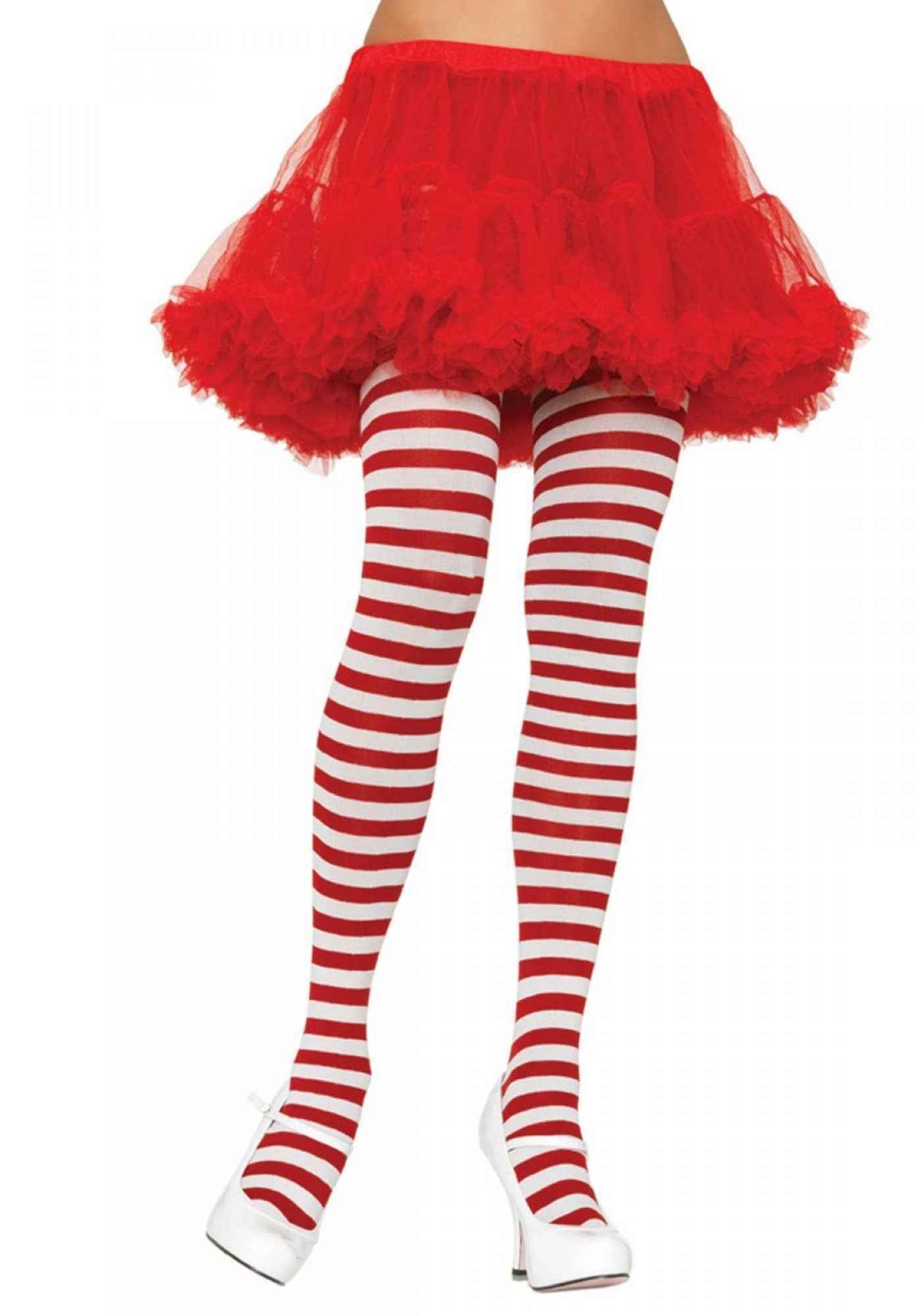 Opaque Gestreifte Strumpfhose Weiß-Rot – Leg Avenue Tights