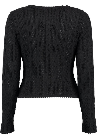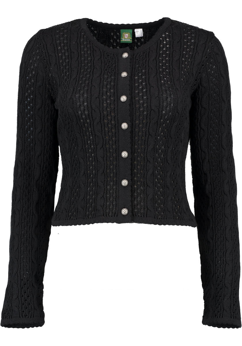 OS Trachten Damen Strickjacke – Kabelstrick, Schwarz, Langarm