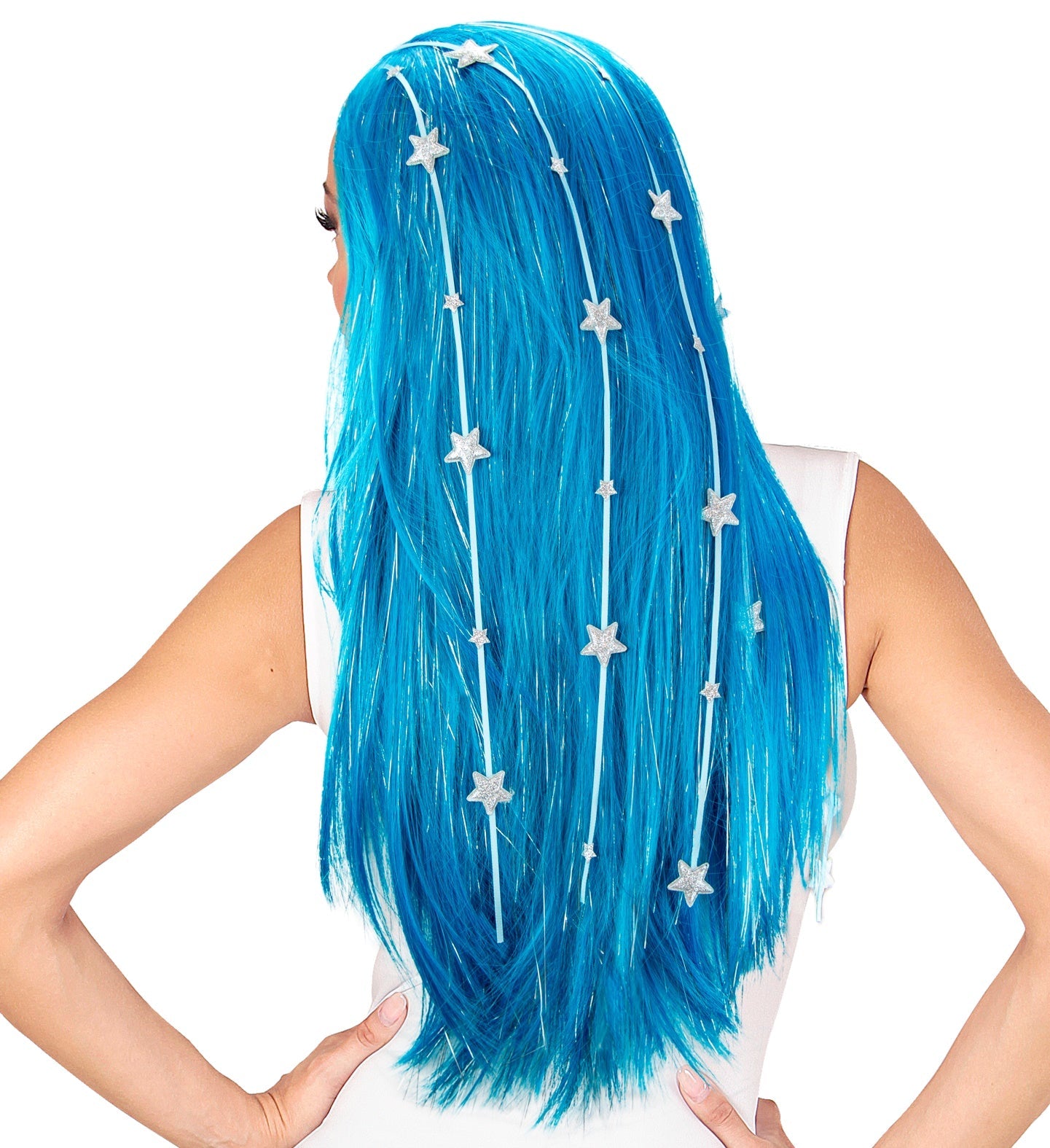 After: You arrive as the brightest fairy in the room. Your Widmann Dream Hair Blue Fairy Wig glows under club lights, the fiber stays silky, and the built-in hair accessories catch every compliment. You flip adjustable straps for a secure fit, dance all night, then wash, blow-dry, even flat-iron the next day—ready for round two.