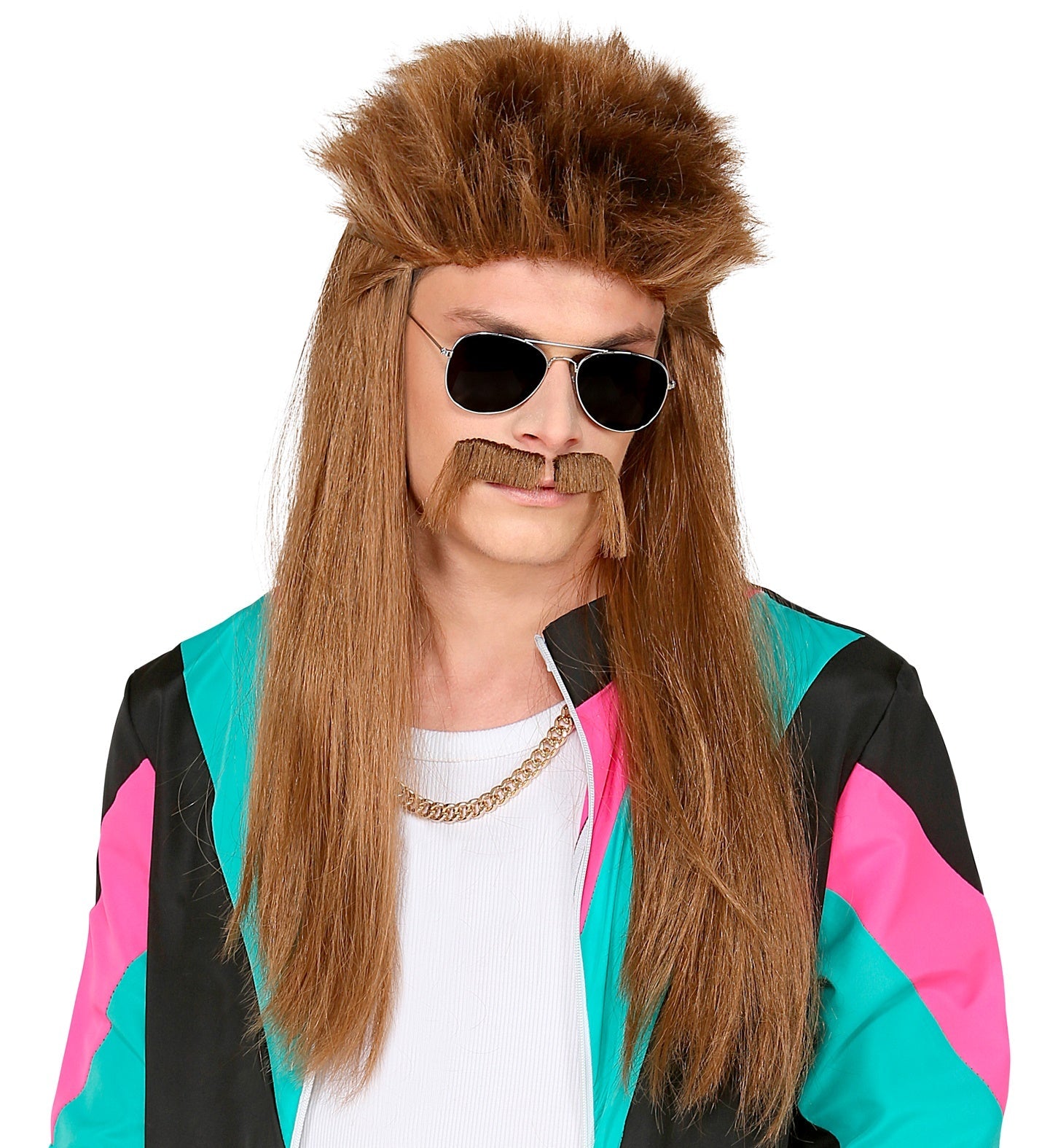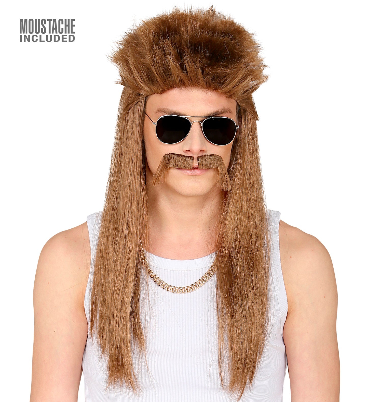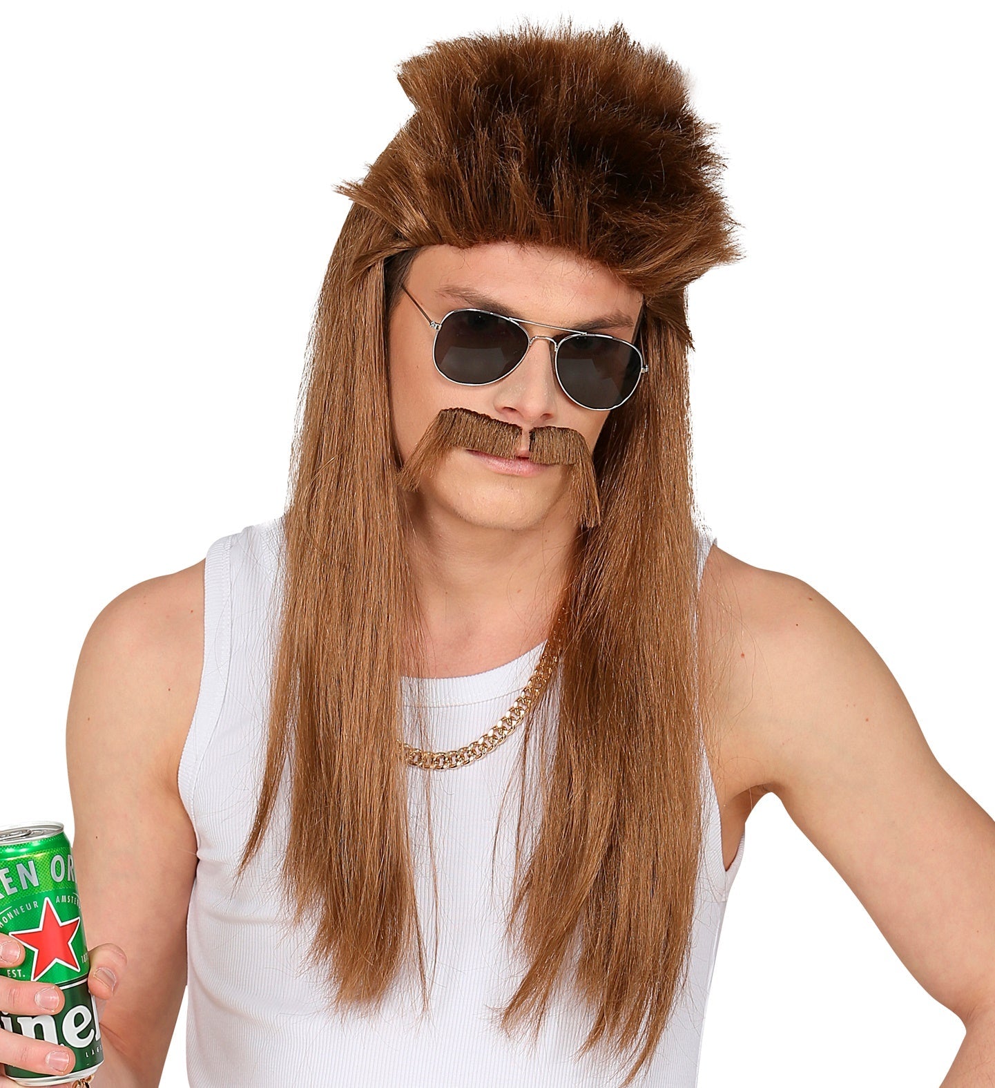 Widmann Perücke Braun – Redneck Wig mit Schnurrbart aus Synthetikhaar
