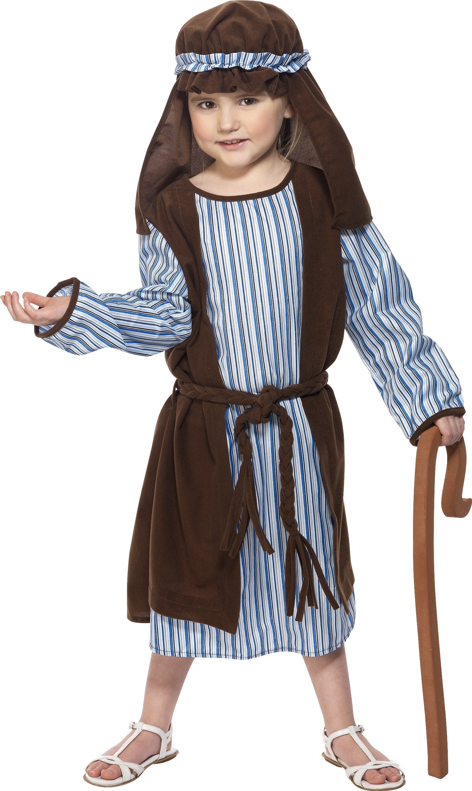 Smiffys Deluxe Schafhirtenkostüm für Kinder – Braun-Blau mit Hirtenstab
