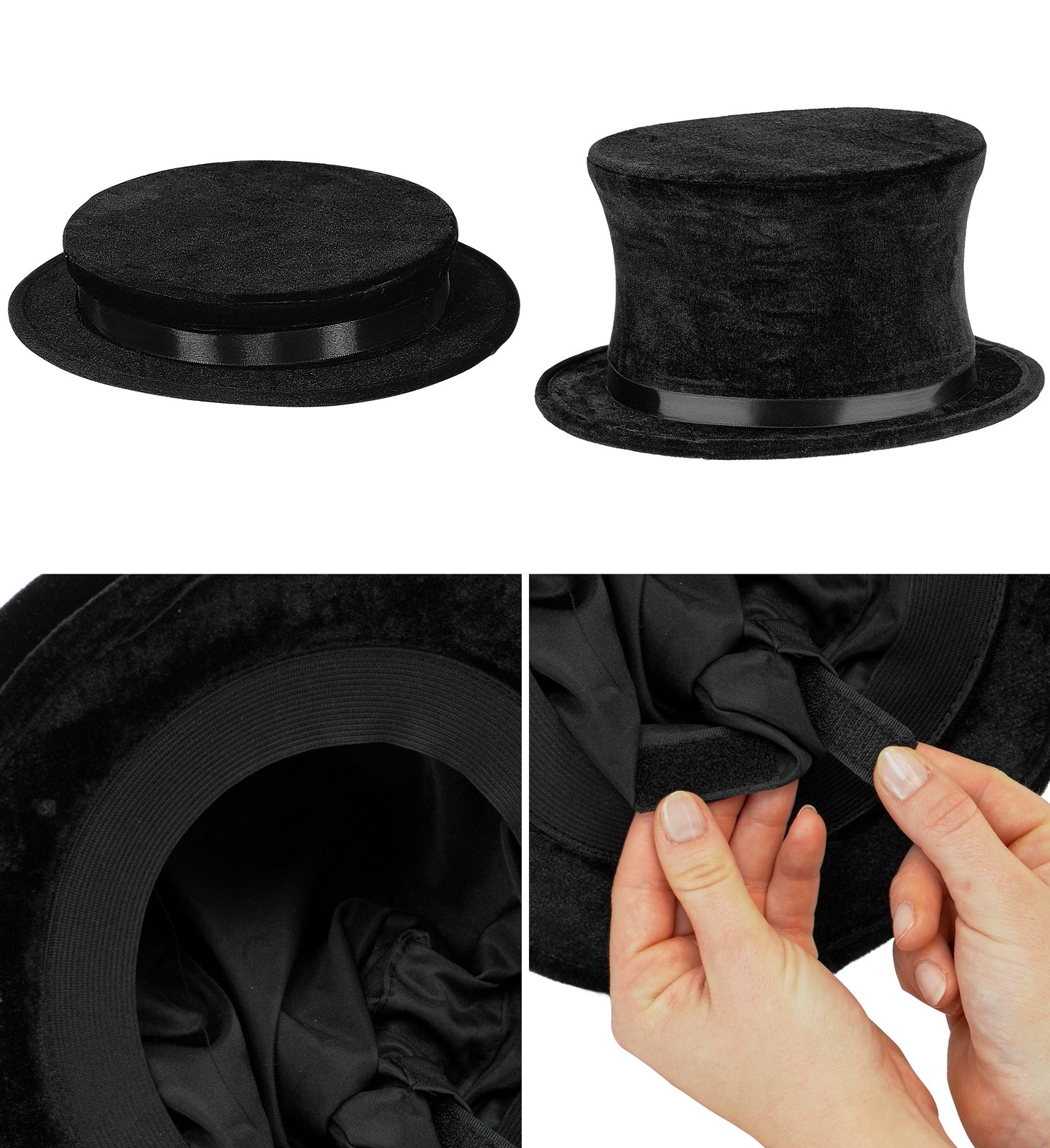 Schwarzer Großer Klapp Samt Zylinder Schwarz