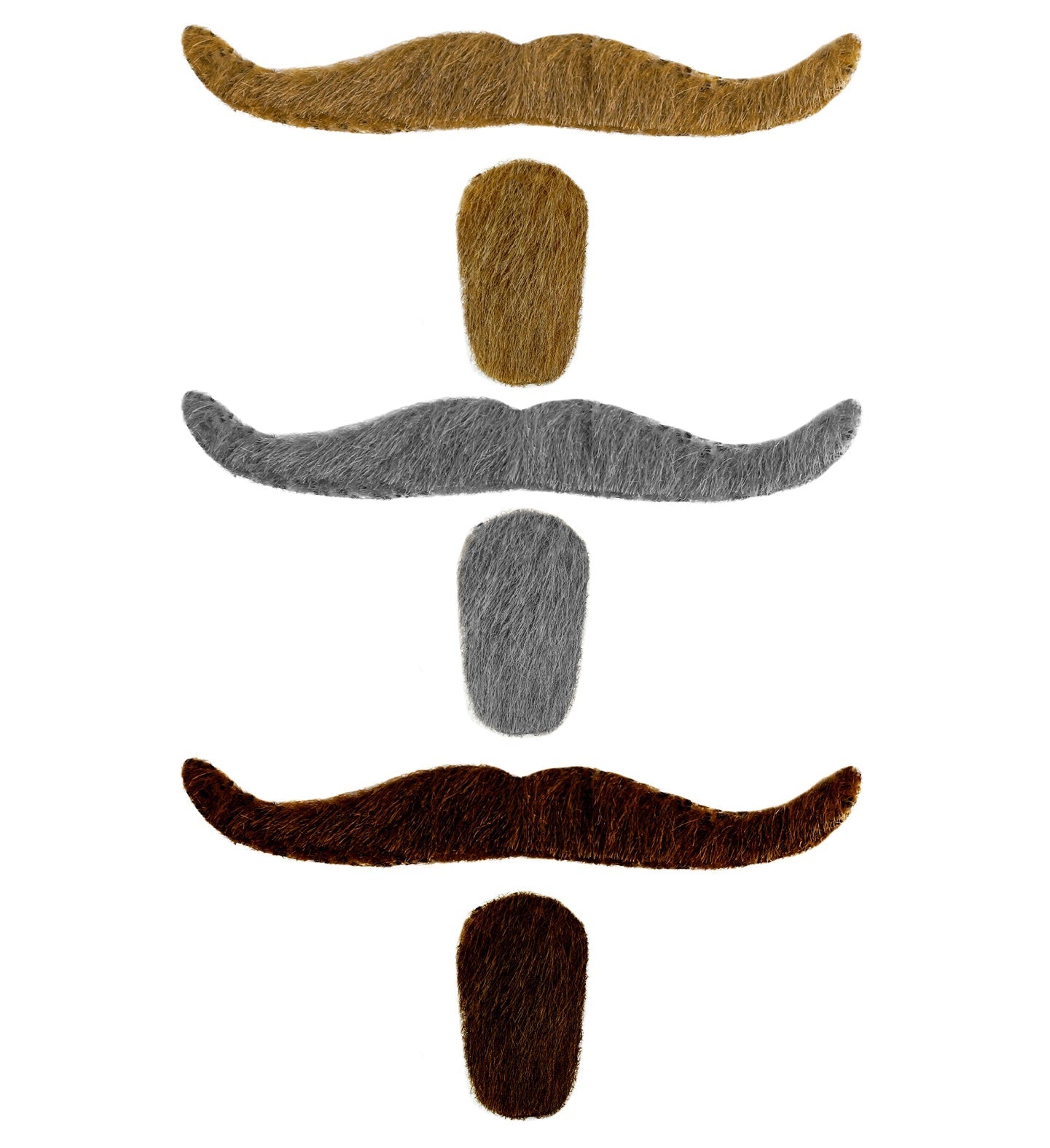 Meet the Widmann Self-Adhesive Moustache and goatee kit. Peel, press, party—three ultra-light styles in Gray Blond, brown, and salt-and-pepper match any look in seconds.